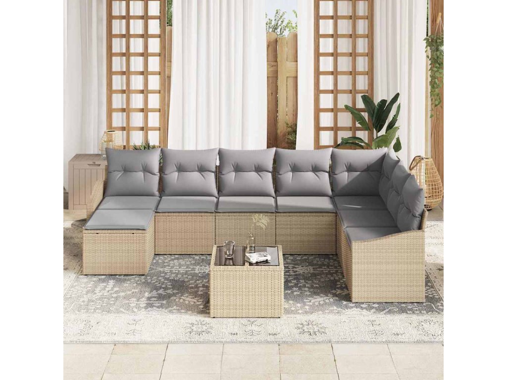 Set pohovek s polštářem 9 pcs Béžová polyratan 3346850