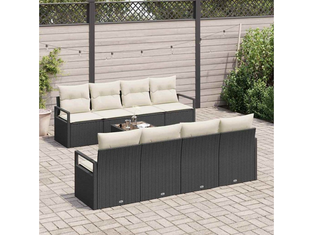 Set pohovek s polštářem 9 pcs Černá a krémová polyratan 3354976