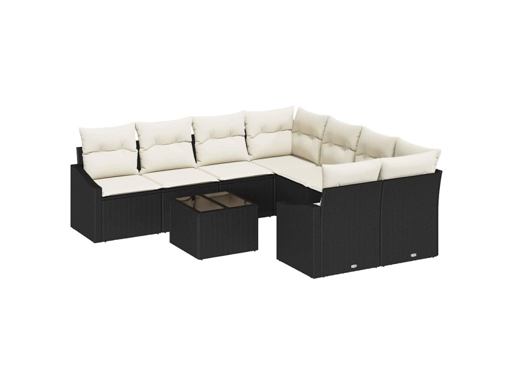 Set pohovek s polštářem 9 pcs Černá a krémová polyratan 3355326