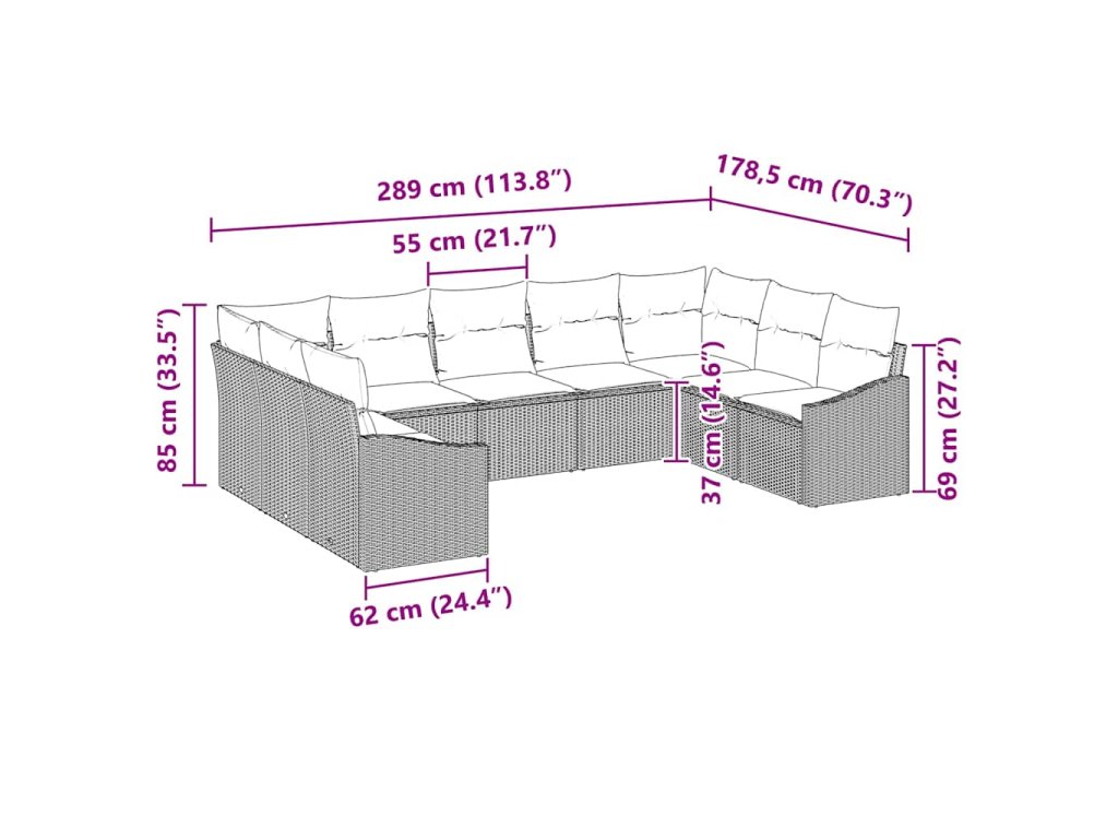 Set pohovek s polštářem 9 pcs Černá polyratan 3346883