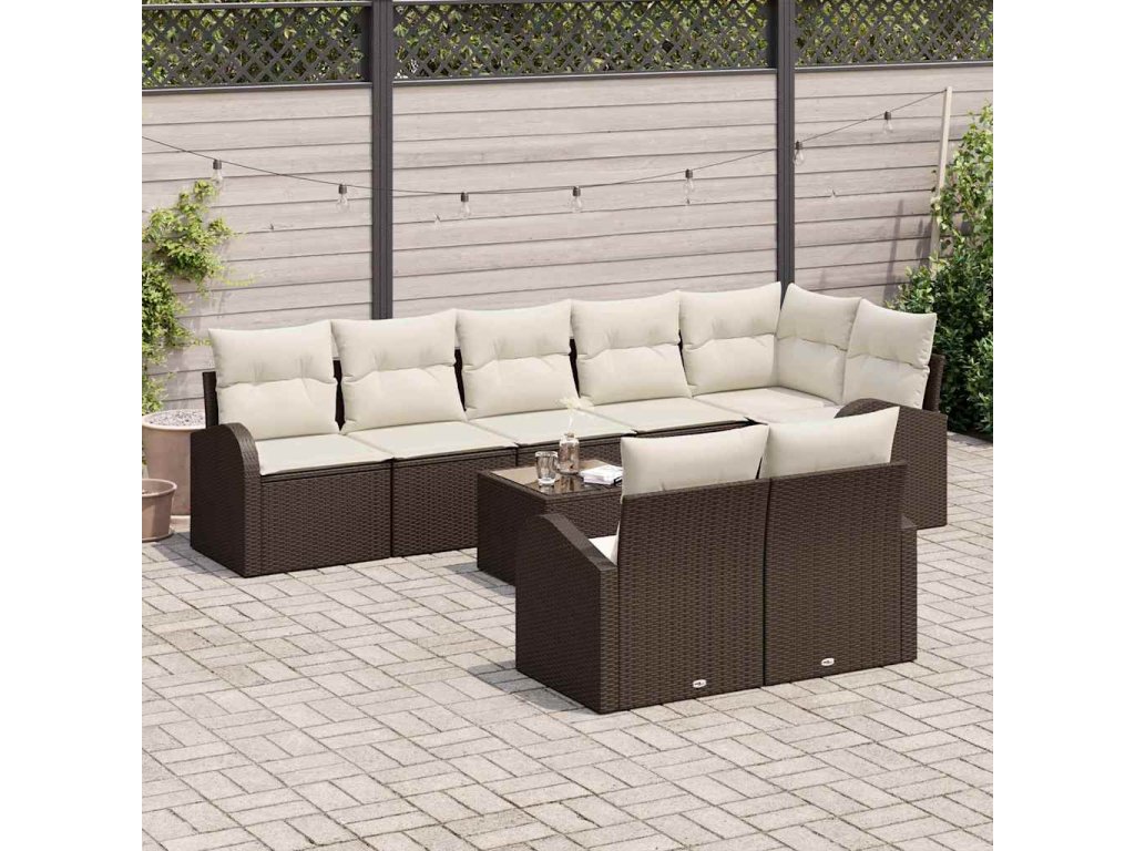Set pohovek s polštářem 9 pcs Hnědá a bílá polyratan 3354767