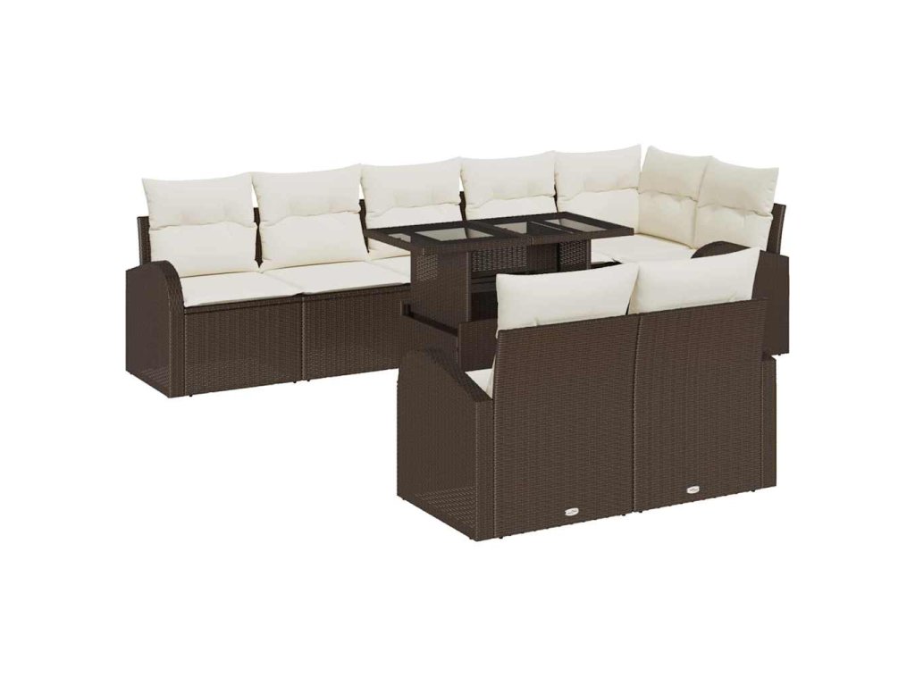 Set pohovek s polštářem 9 pcs Hnědá a krémová polyratan 3348664