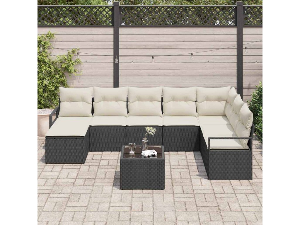 Set pohovek s polštářem 9 pcs Hnědá a krémová polyratan 3355176