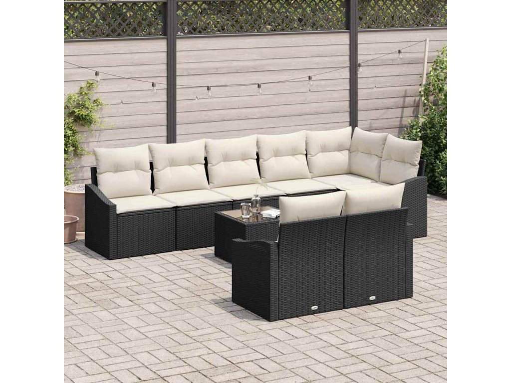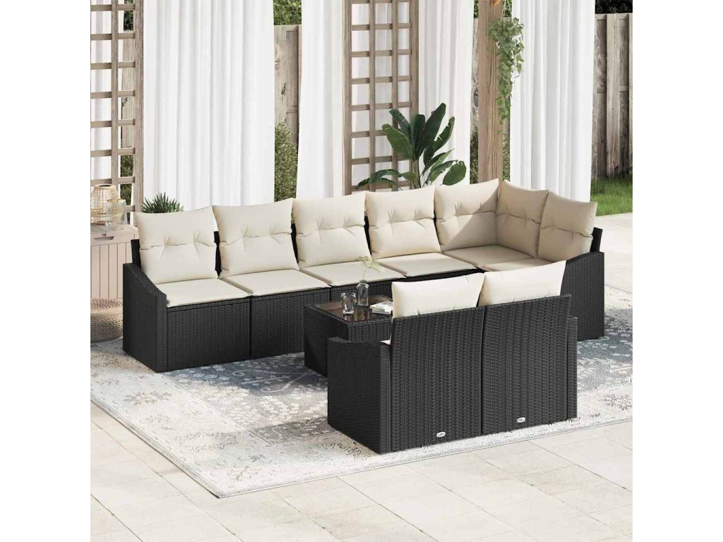 Set pohovek s polštářem 9 pcs Hnědá a krémová polyratan 3355446