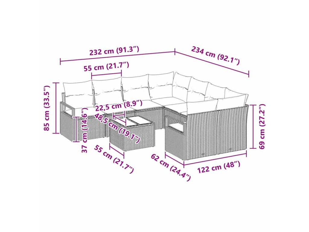 - Materiál poly ratan: Luxusně navržená z poly ratanu, tato sedací souprava je nezařaditelná, protože odolává všem venkovním podmínkám a navíc vypadá skvěle. Tkaná textura zvyšuje estetičnost a zdůrazňuje pevnost vůči povětrnostním vlivům. UV-odolné vlastnosti poly ratanu ji dělají skvělou volbou pro sluncem zalité terasy, zachovávající eleganci během teplých měsíců.