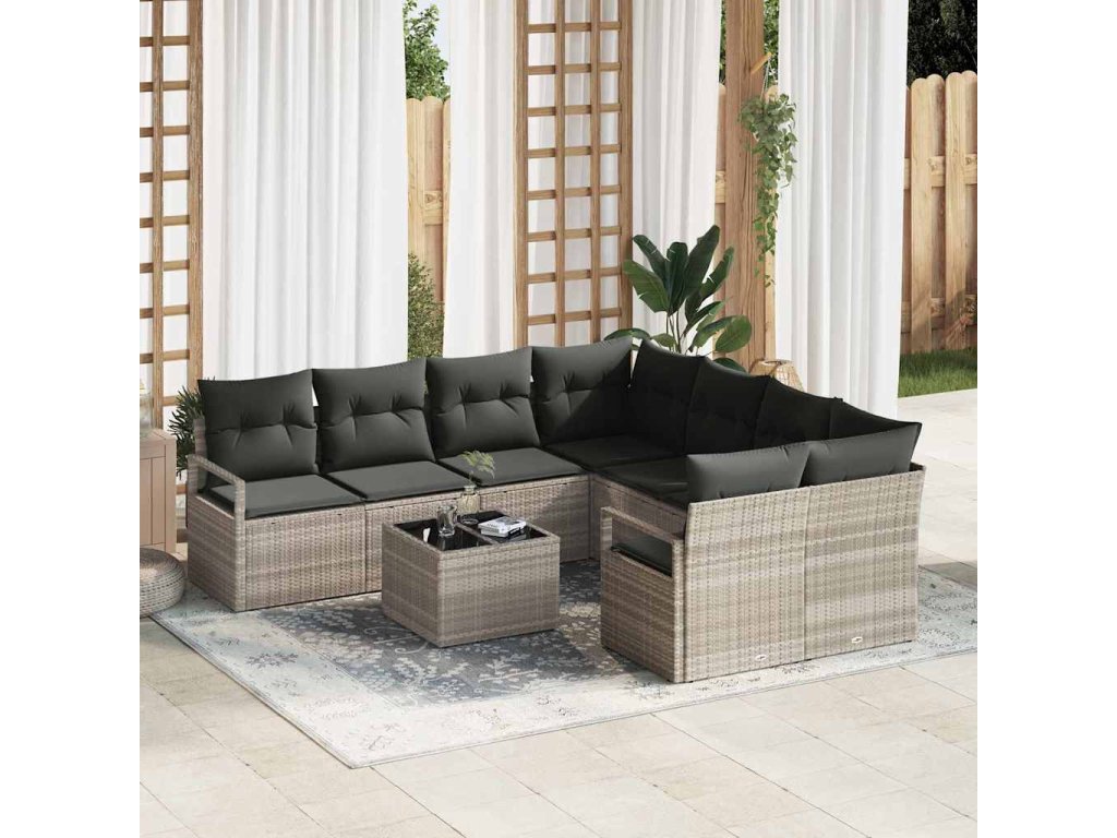 Set pohovek s polštářem 9 pcs Světlá šedá a černá polyratan 3346322