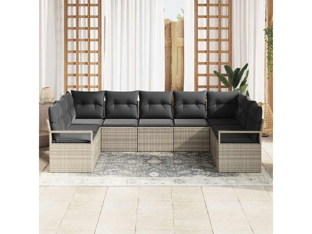 Set pohovek s polštářem 9 pcs Světle šedá polyratan 3346542