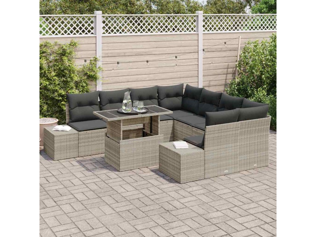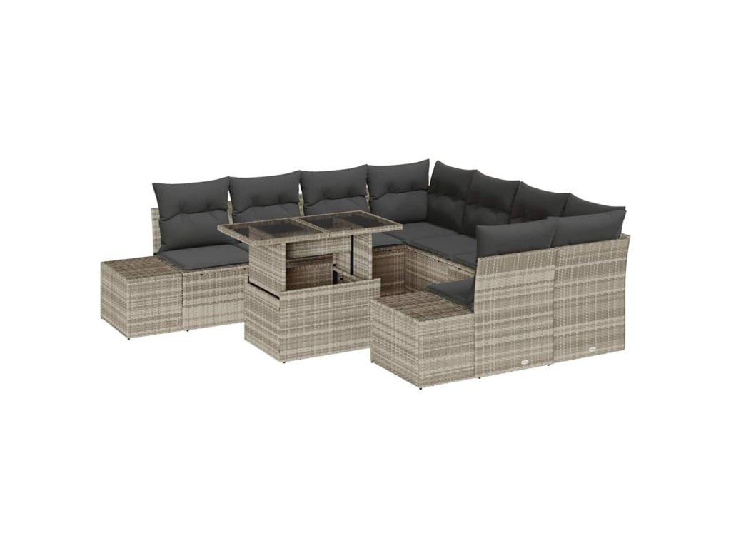 Set pohovek s polštářem 9 pcs Světle šedá polyratan 3349158