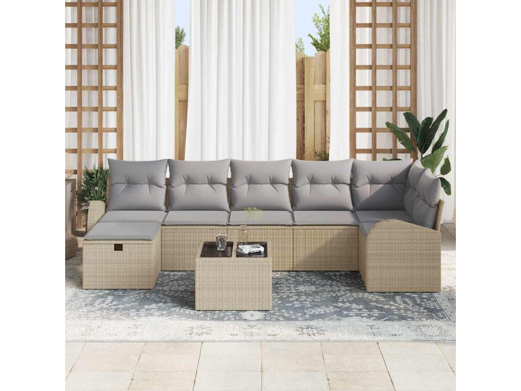 Set pohovek s polštářem Béžová a Světle šedá polyratan 3359109