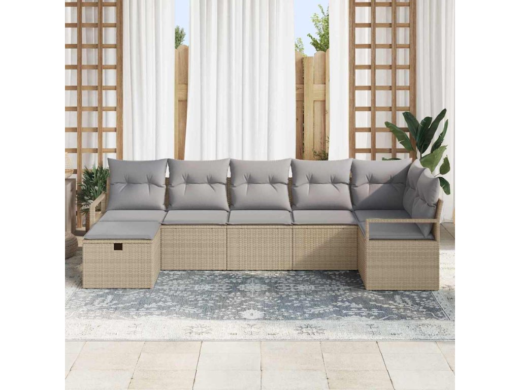 Set pohovek s polštářem Béžová a Světle šedá polyratan 3359199