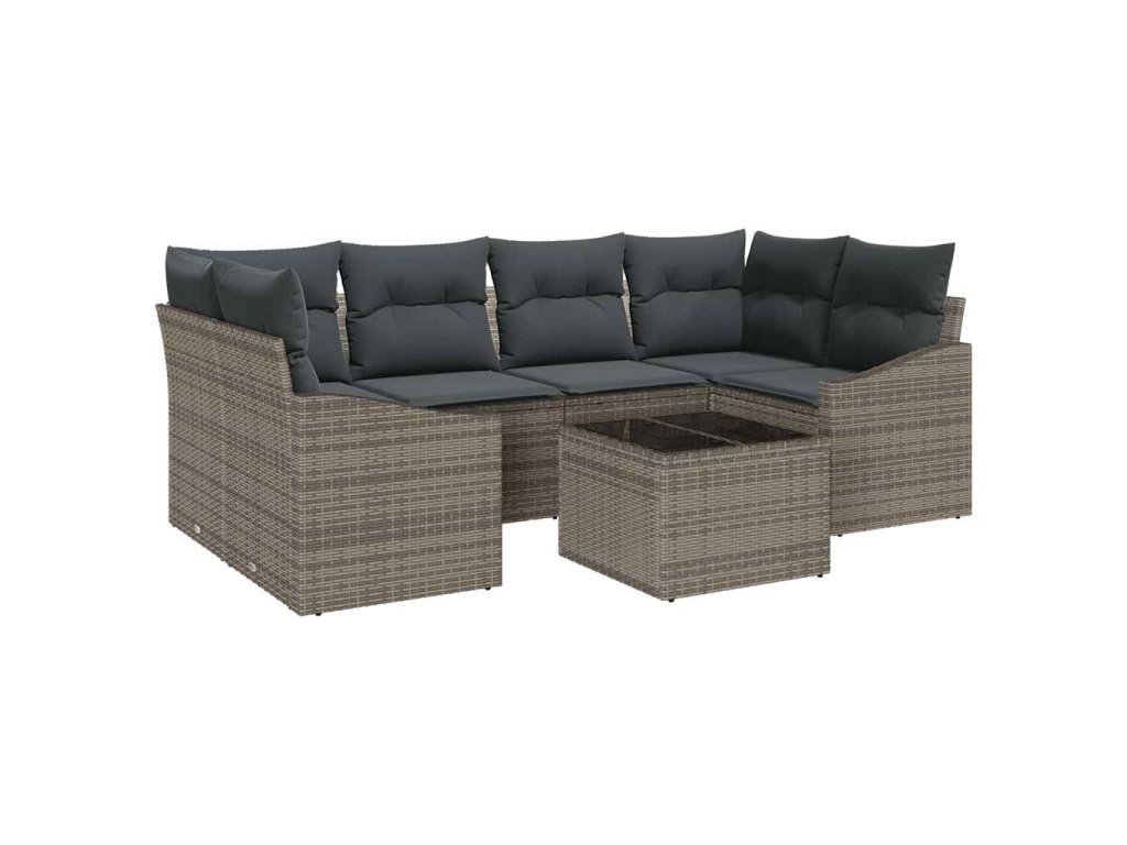 Set pohovek s polštářem s polštářem 7 pcs Šedá polyratan 3346619