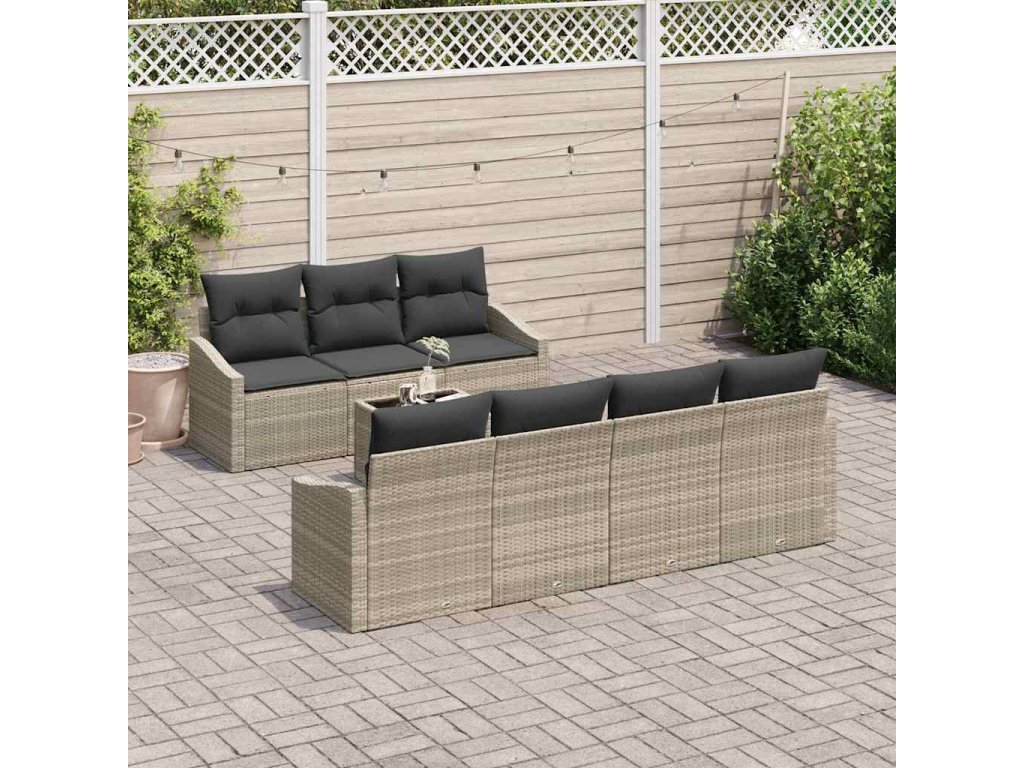 Set pohovek s polštářem s polštářem 8 pcs Světle šedá polyratan 3346632
