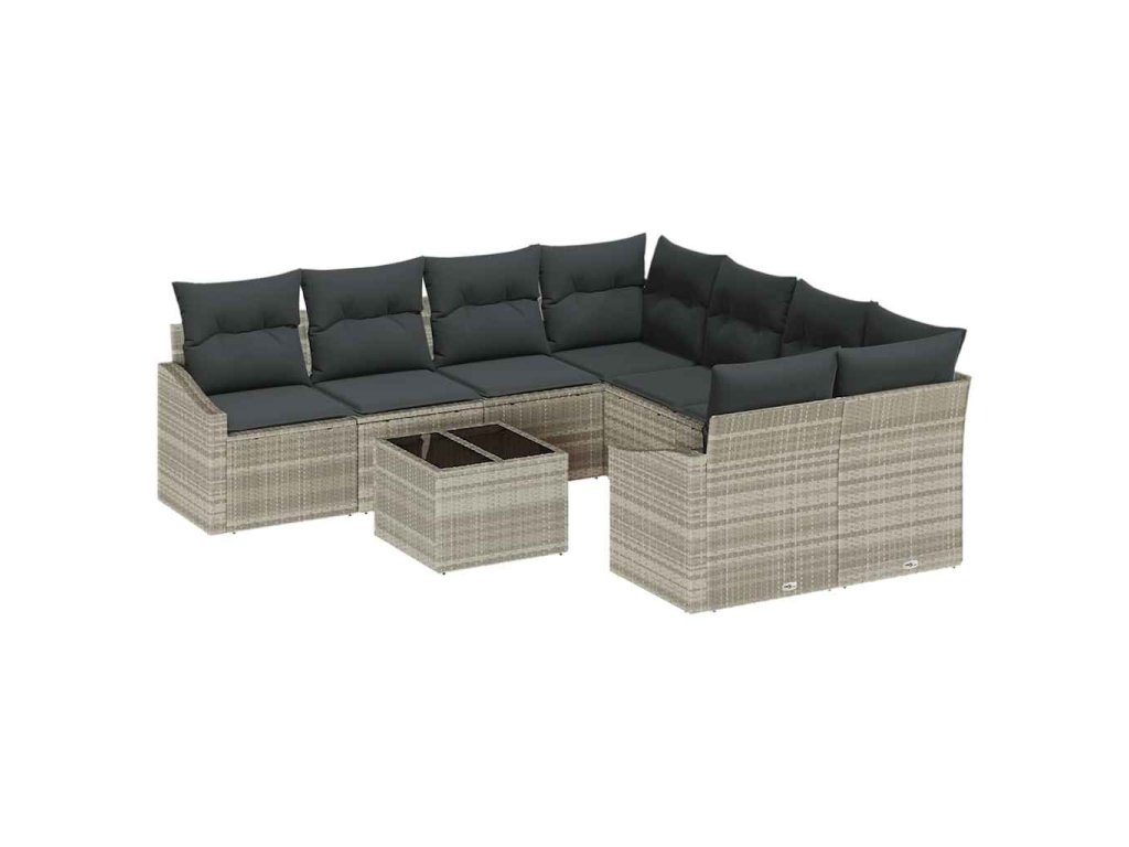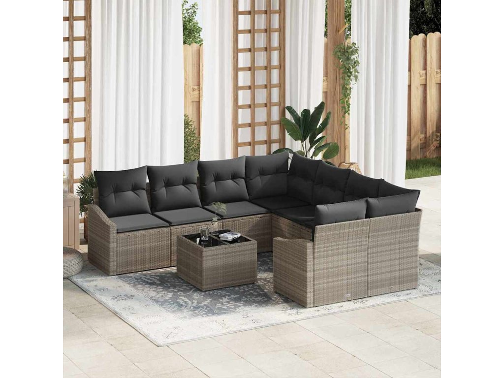 Set pohovek s polštářem s polštářem 9 pcs Světle šedá polyratan 3346662