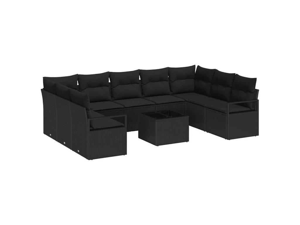 Set pohovek s polštářem s úložištěm 10 pcs Černá polyratan 3355222