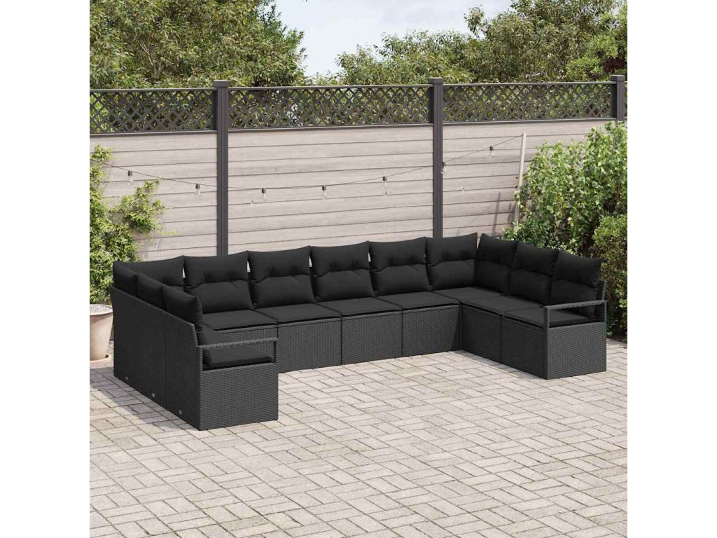 Set pohovek s polštářem s úložištěm 10 pcs Černá polyratan 3355232