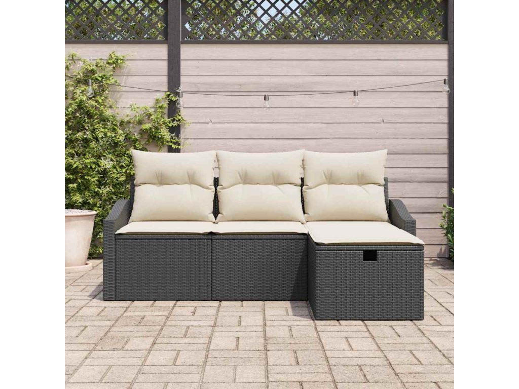 Set pohovek s polštářem s úložištěm 4 pcs Černá polyratan 3359246