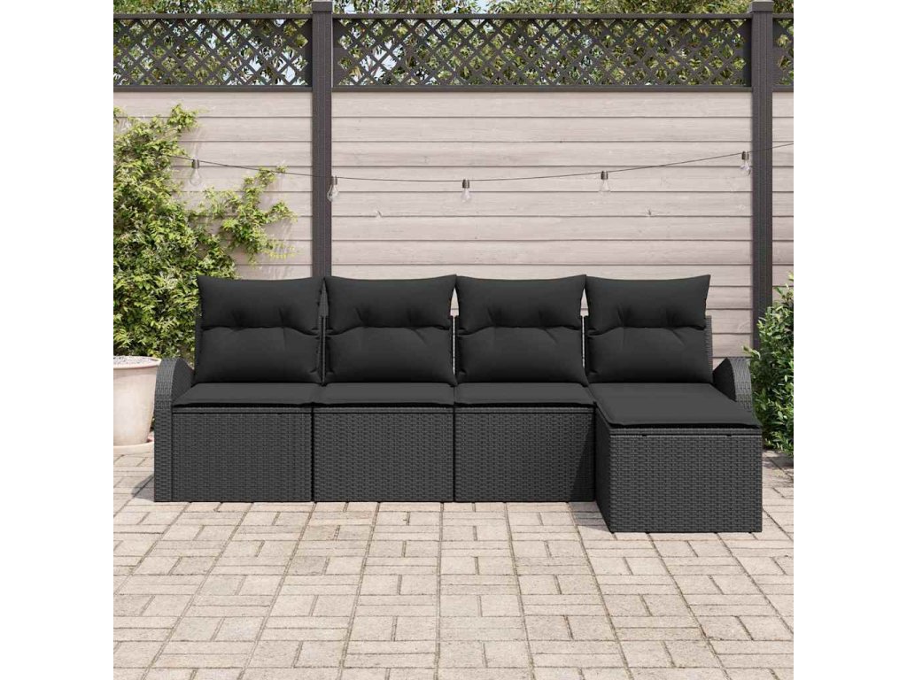 Set pohovek s polštářem s úložištěm 5 pcs Černá polyratan 3354672