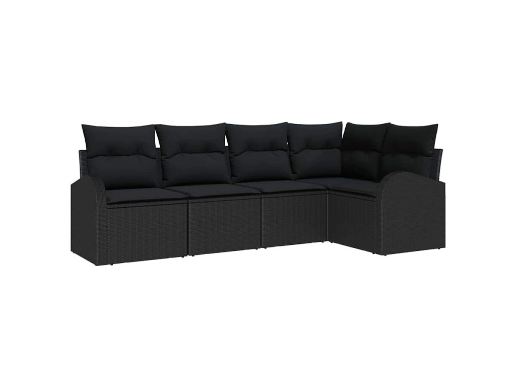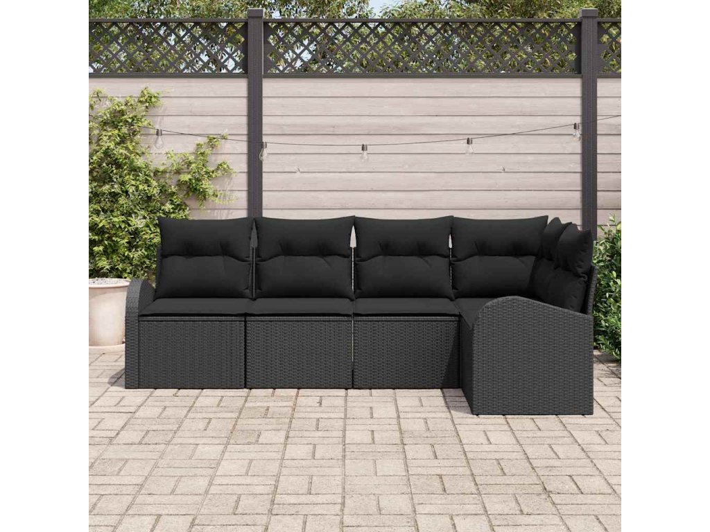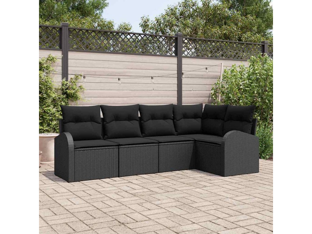Set pohovek s polštářem s úložištěm 5 pcs Černá polyratan 3354712