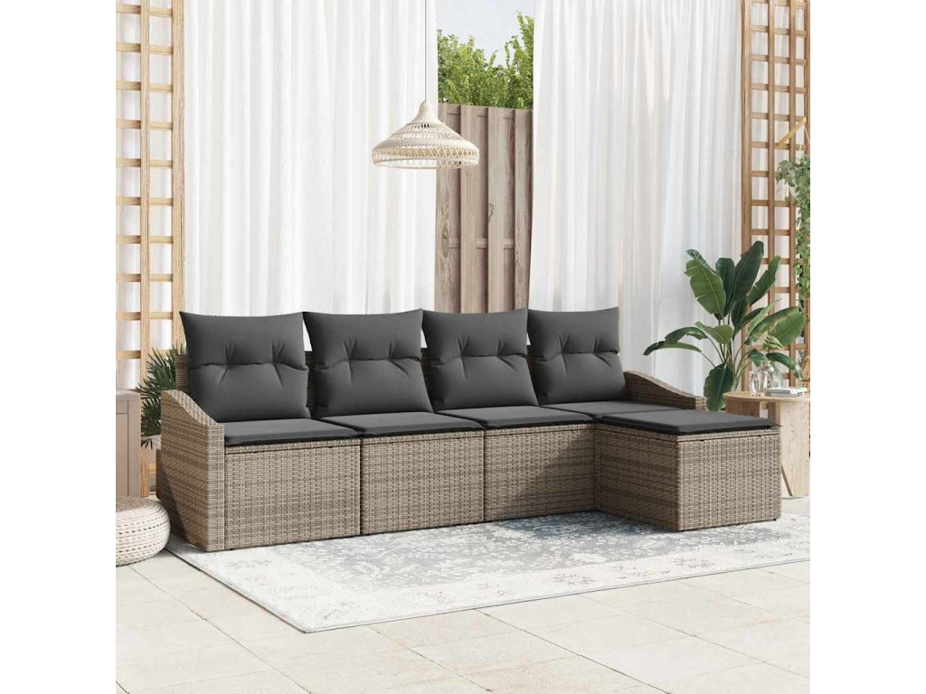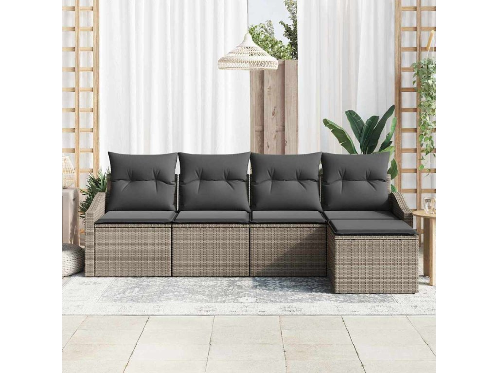 Set pohovek s polštářem s úložištěm 5 pcs Šedá polyratan 3355348