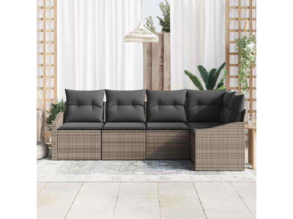 Set pohovek s polštářem s úložištěm 5 pcs Šedá polyratan 3355388