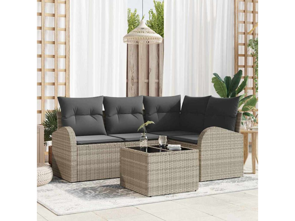 Set pohovek s polštářem s úložištěm 5 pcs Světle šedá polyratan 3354701