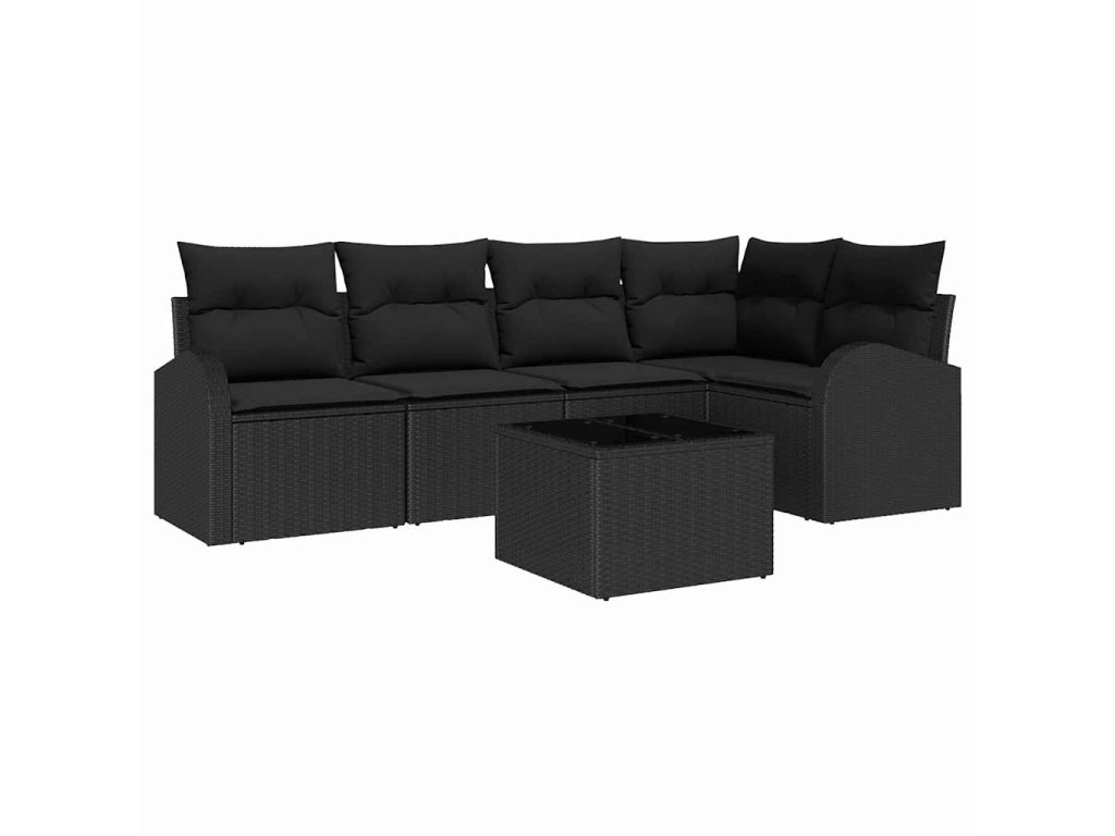 Set pohovek s polštářem s úložištěm 6 pcs Černá polyratan 3354722