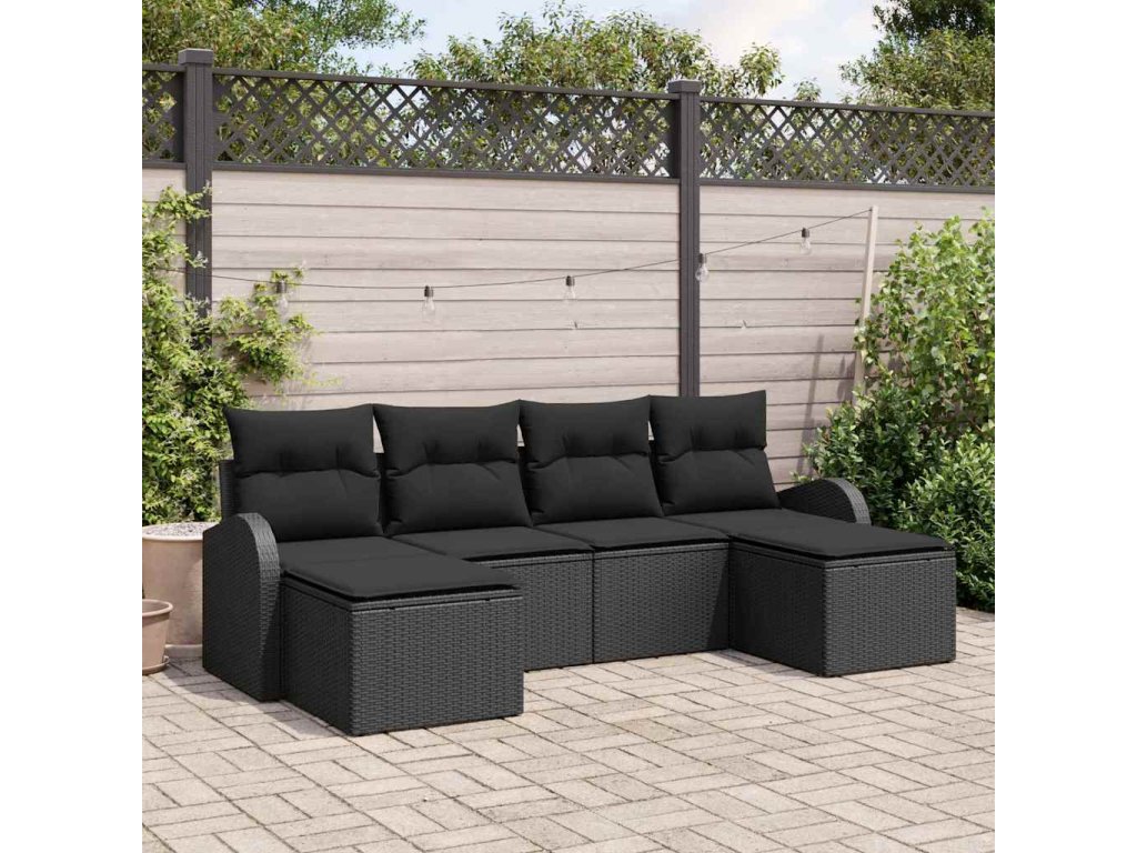 Set pohovek s polštářem s úložištěm 6 pcs Černá polyratan 3354822