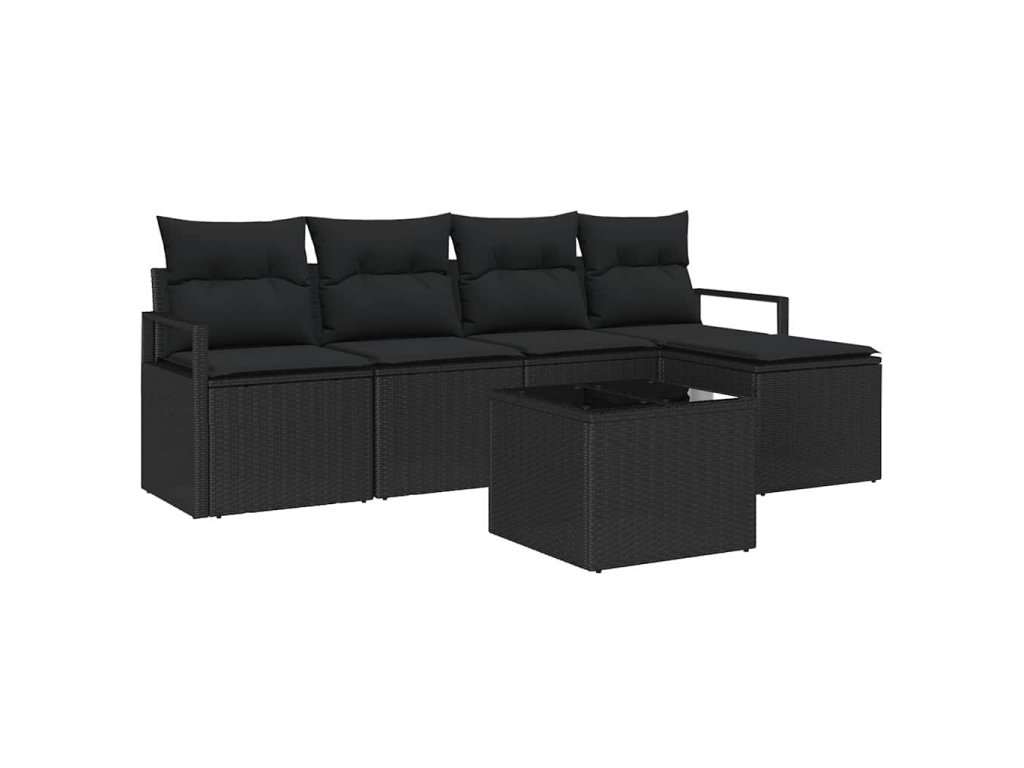 Set pohovek s polštářem s úložištěm 6 pcs Černá polyratan 3355022
