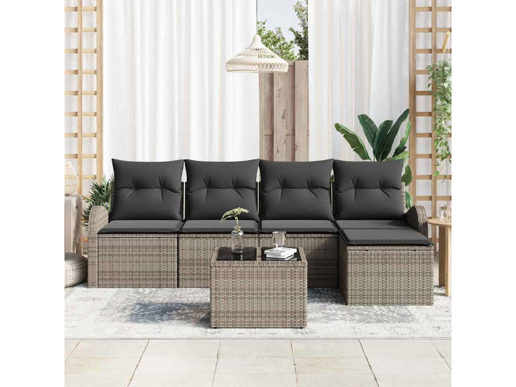 Set pohovek s polštářem s úložištěm 6 pcs Šedá polyratan 3354678