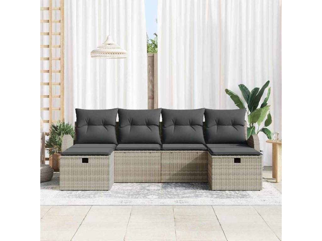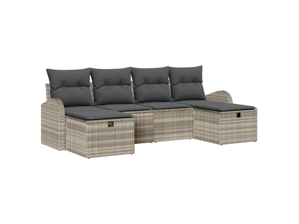 Set pohovek s polštářem s úložištěm 6 pcs Světle šedá polyratan 3359121