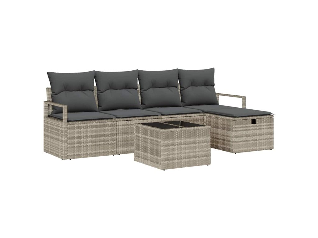 Set pohovek s polštářem s úložištěm 6 pcs Světle šedá polyratan 3359171