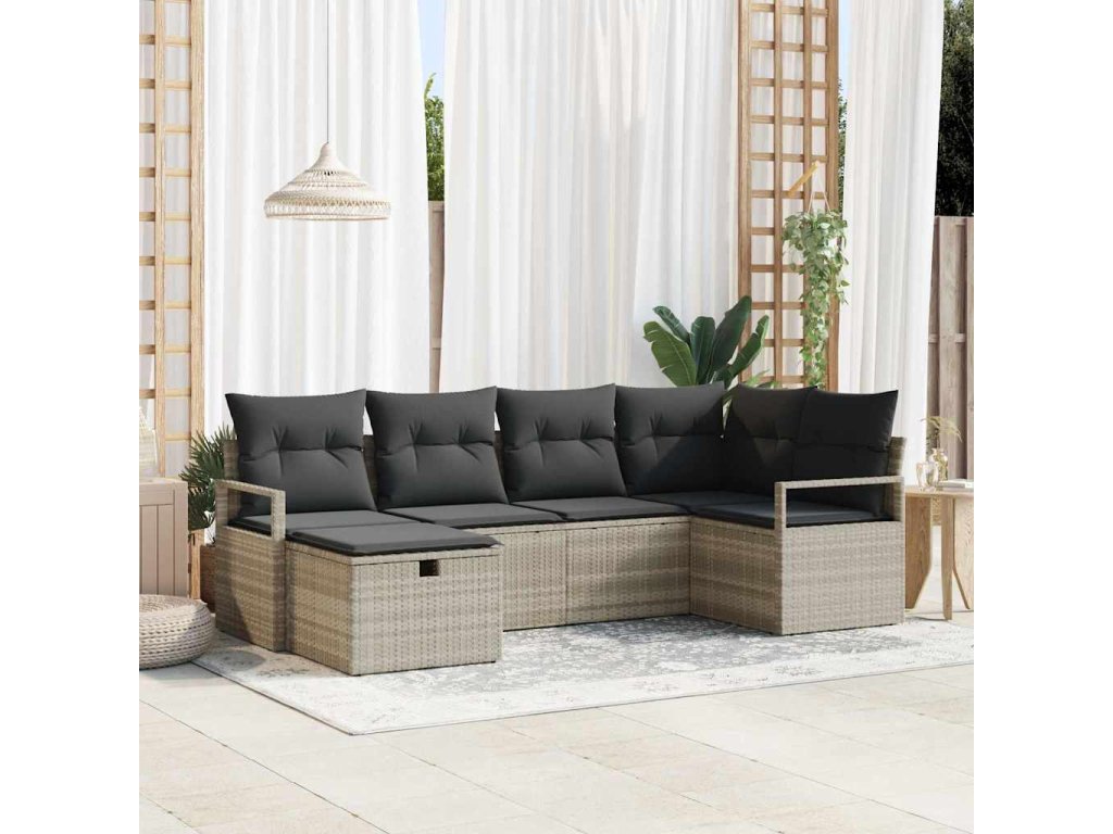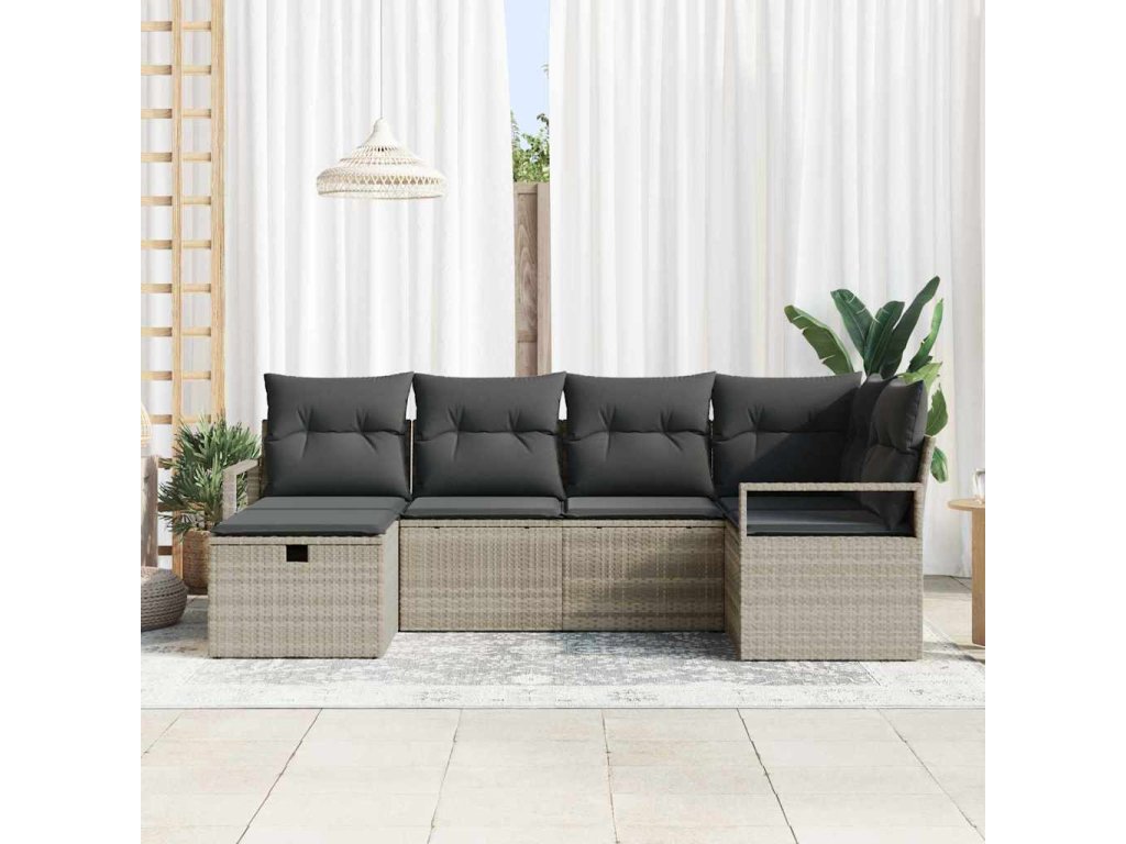 Set pohovek s polštářem s úložištěm 6 pcs Světle šedá polyratan 3359181
