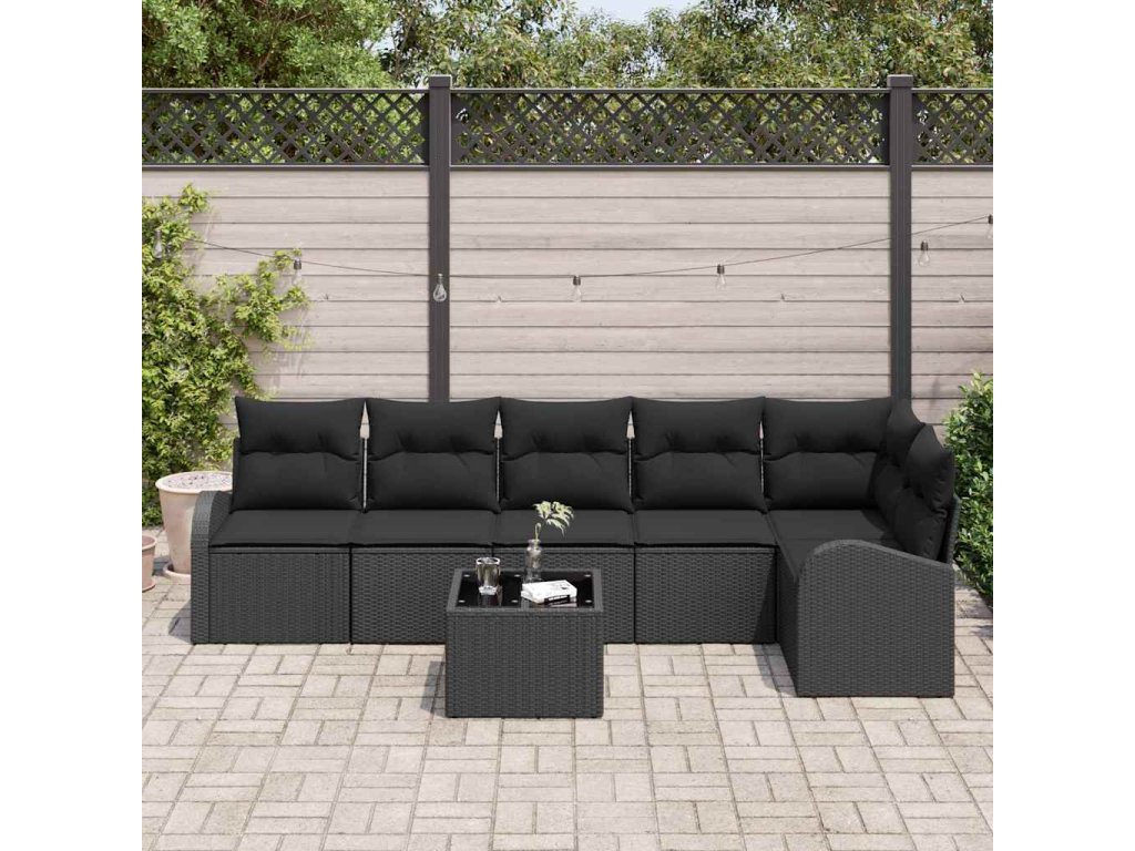 Set pohovek s polštářem s úložištěm 7 pcs Černá polyratan 3354742