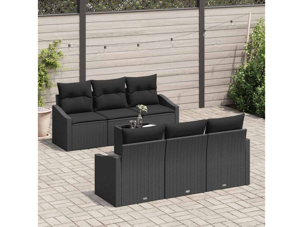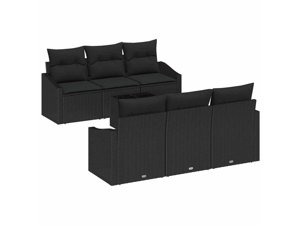 Set pohovek s polštářem s úložištěm 7 pcs Černá polyratan 3355282
