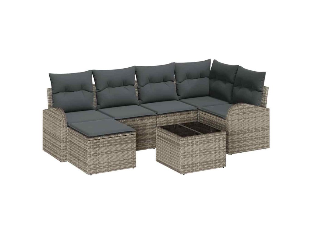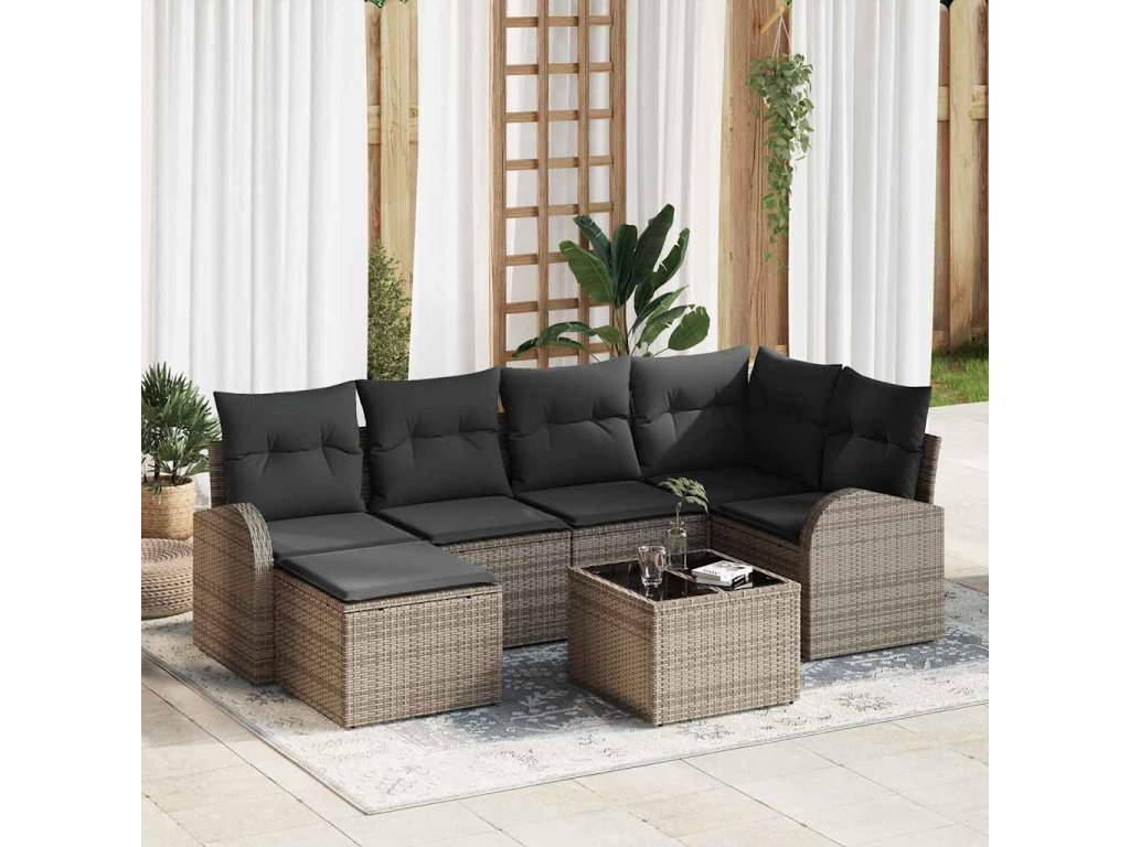 Set pohovek s polštářem s úložištěm 7 pcs Šedá polyratan 3354788