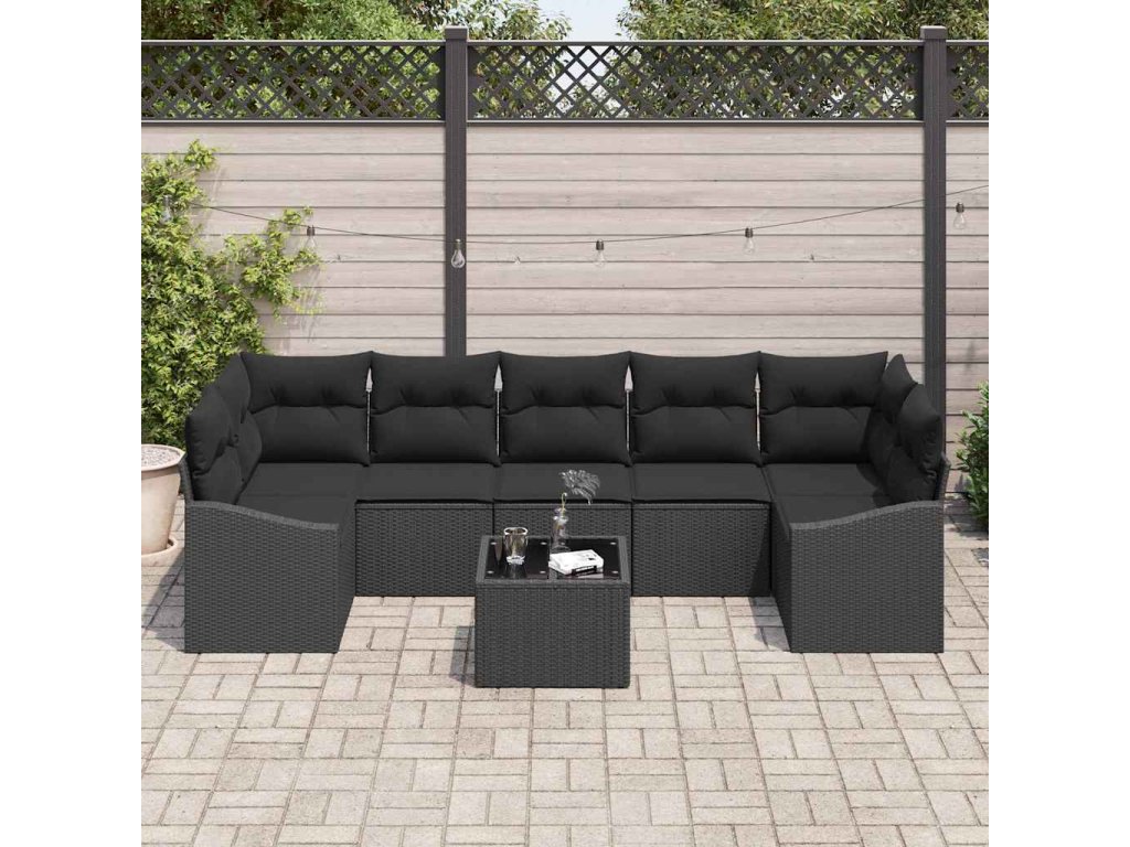 Set pohovek s polštářem s úložištěm 8 pcs Černá polyratan 3355312