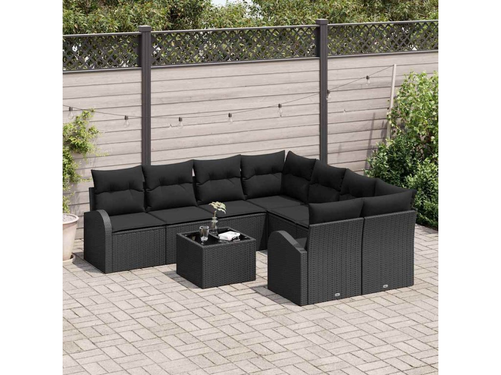 Set pohovek s polštářem s úložištěm 9 pcs Černá polyratan 3354652