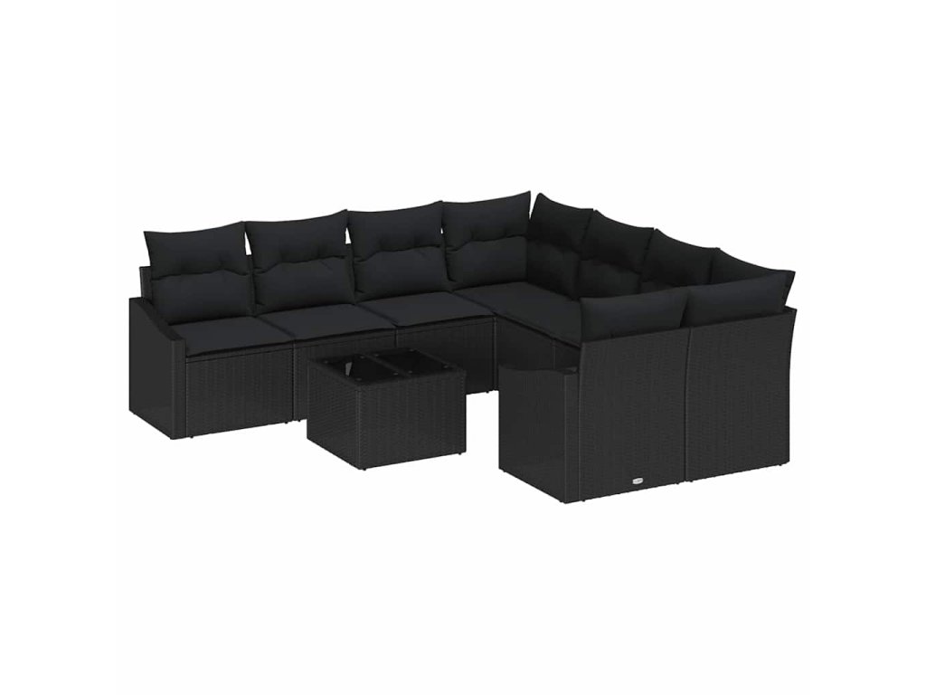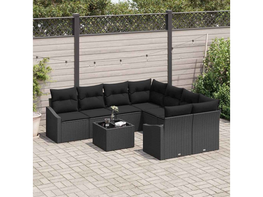 Set pohovek s polštářem s úložištěm 9 pcs Černá polyratan 3355332