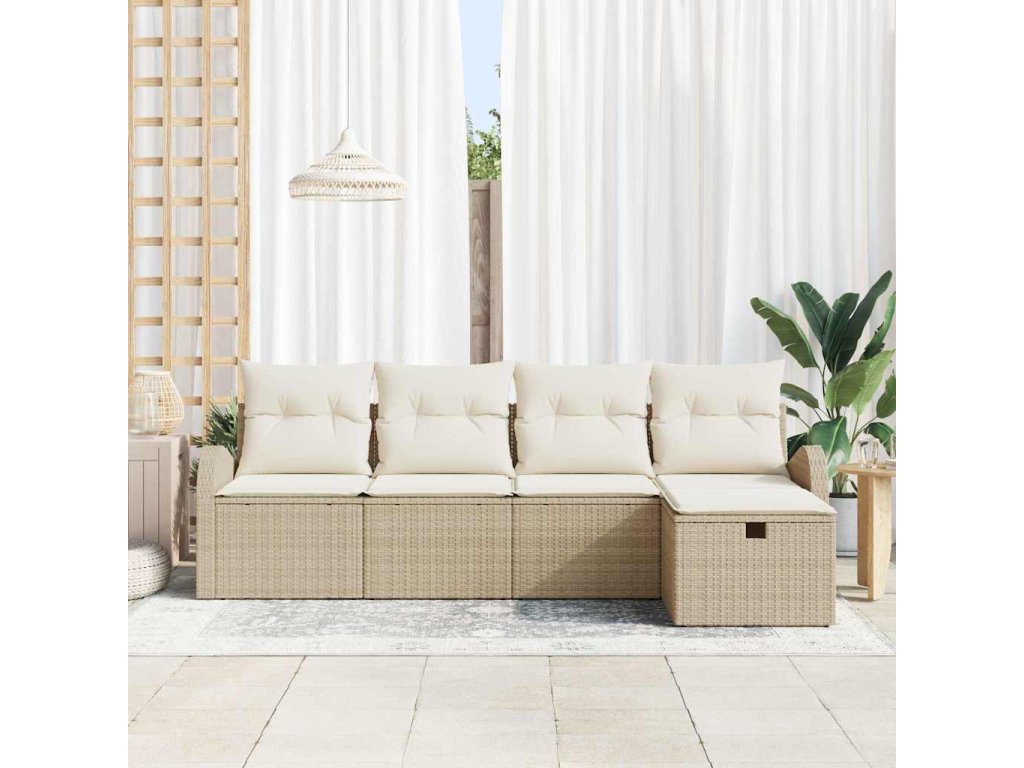 Set pohovek s polštářem s úložištěm Béžová a krémová polyratan 3359060