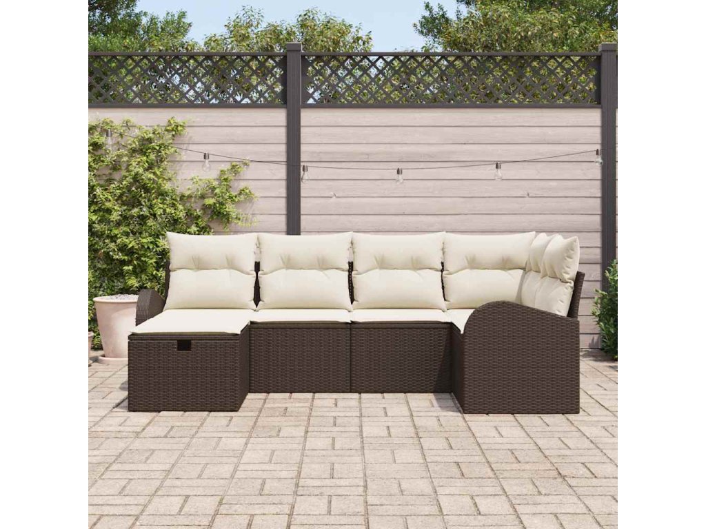 Set pohovek s polštářem s úložištěm Hnědá a krémová polyratan 3359077