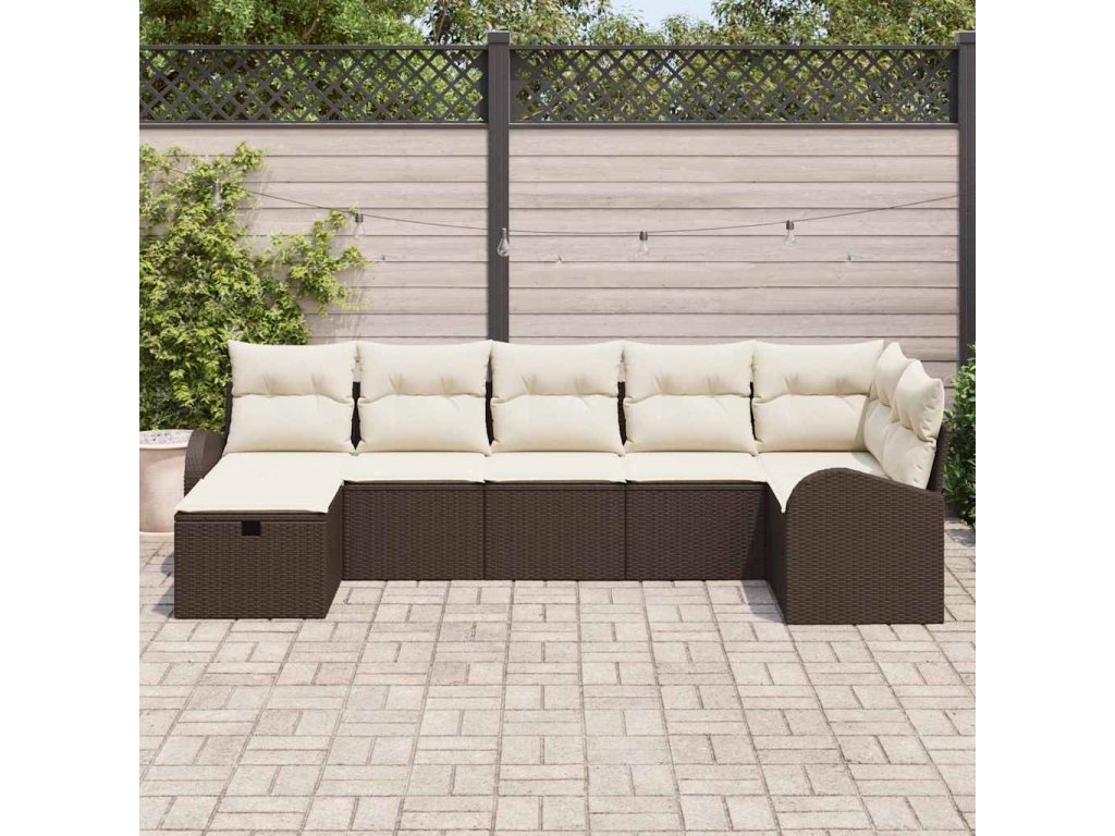 Set pohovek s polštářem s úložištěm Hnědá a krémová polyratan 3359097