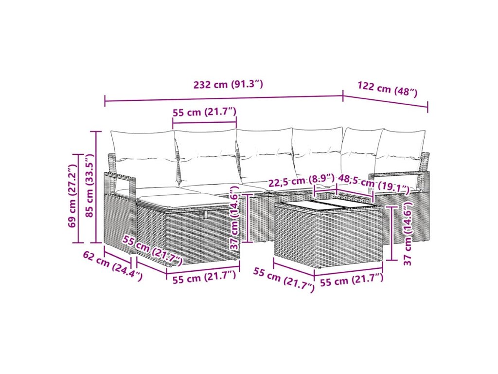 - Materiály: Tento sedací set je vyrobený z kvalitního polyratanu a má silný rám z práškované oceli, navržený tak, aby odolal náročným podmínkám venkovního používání a zároveň stále vypadal stylově. Materiály přidávají moderní vzhled, který oživí jakoukoliv zahradu nebo terasu.