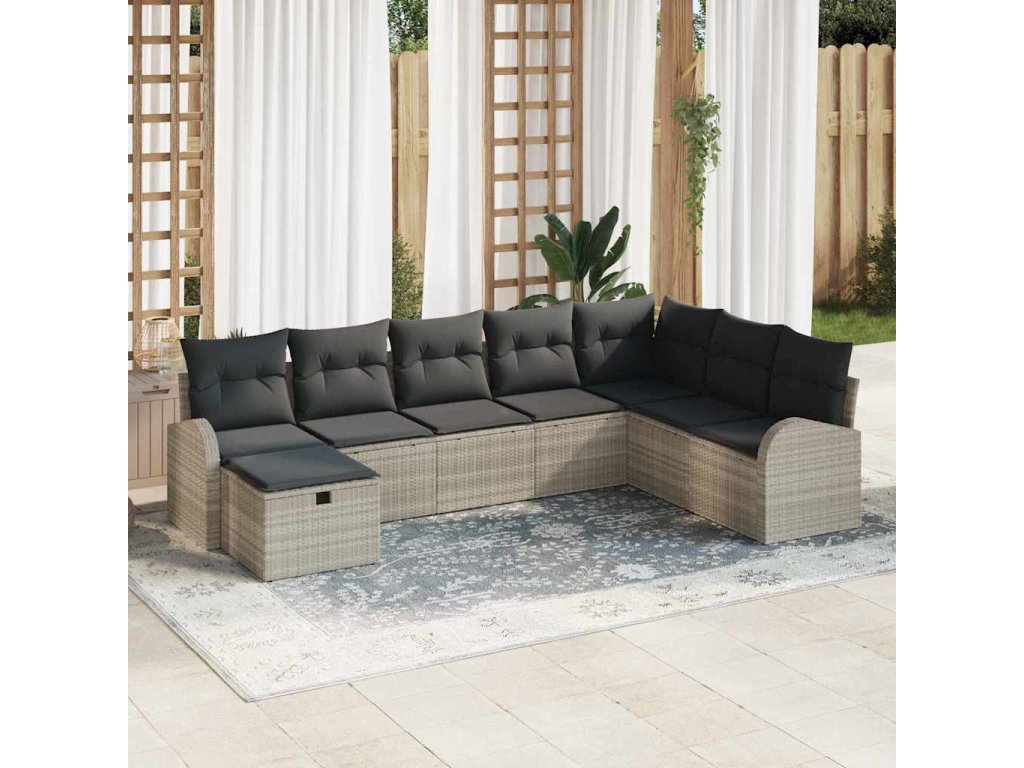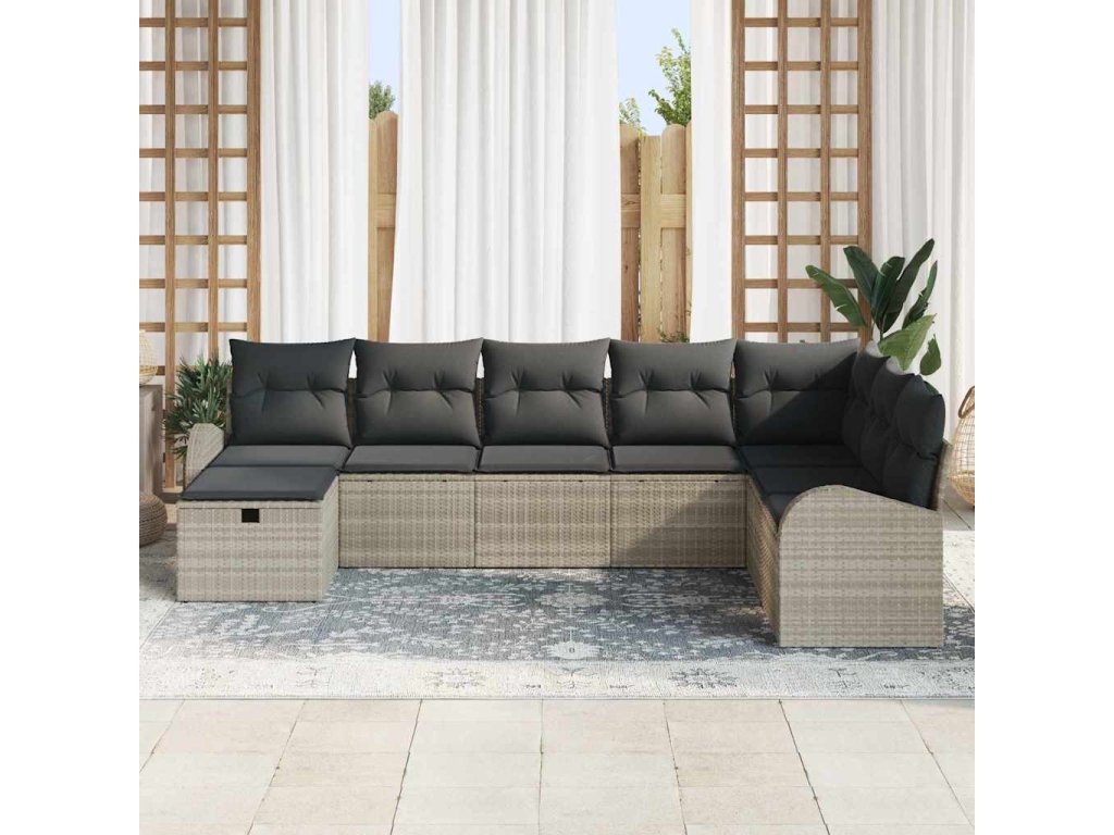 Set pohovek s polštářem s úložištěm Světle šedá polyratan 3359131