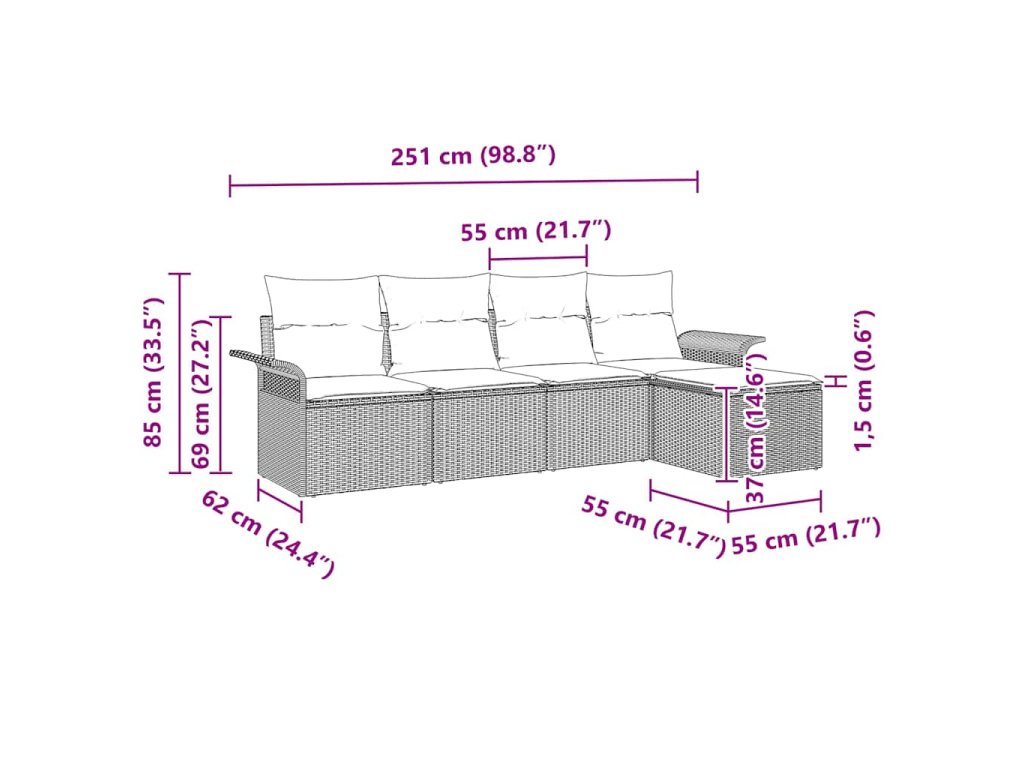 - 4 x zadní polštář: 55 x 55 cm (d x š)