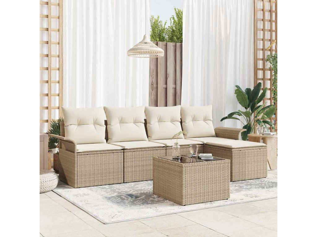 Venkovní pohovka s polštářem 6 pcs Béžová polyratan 3345331