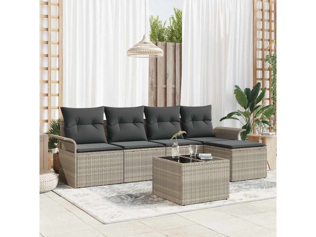 Venkovní pohovka s polštářem 6 pcs Světle šedá polyratan 3345332