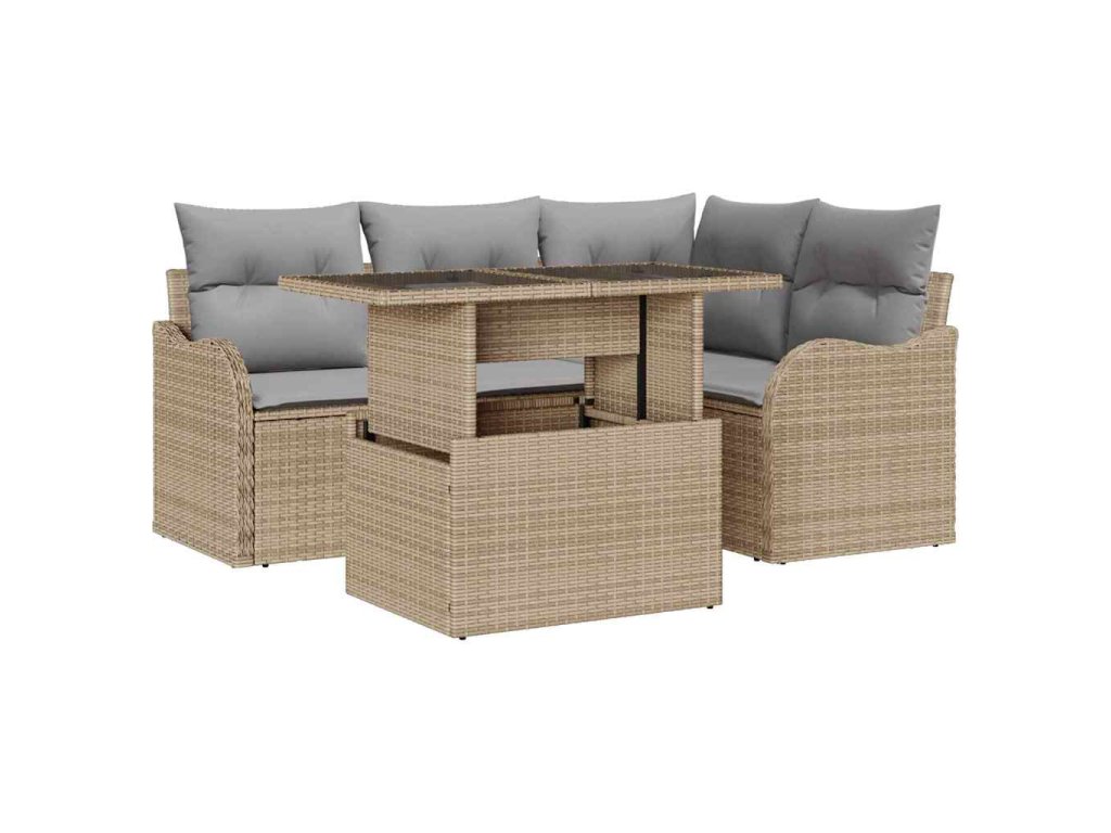 Zahradní jídelní sada s polštářem 5 pcs Béžová Poly ratan 3348456