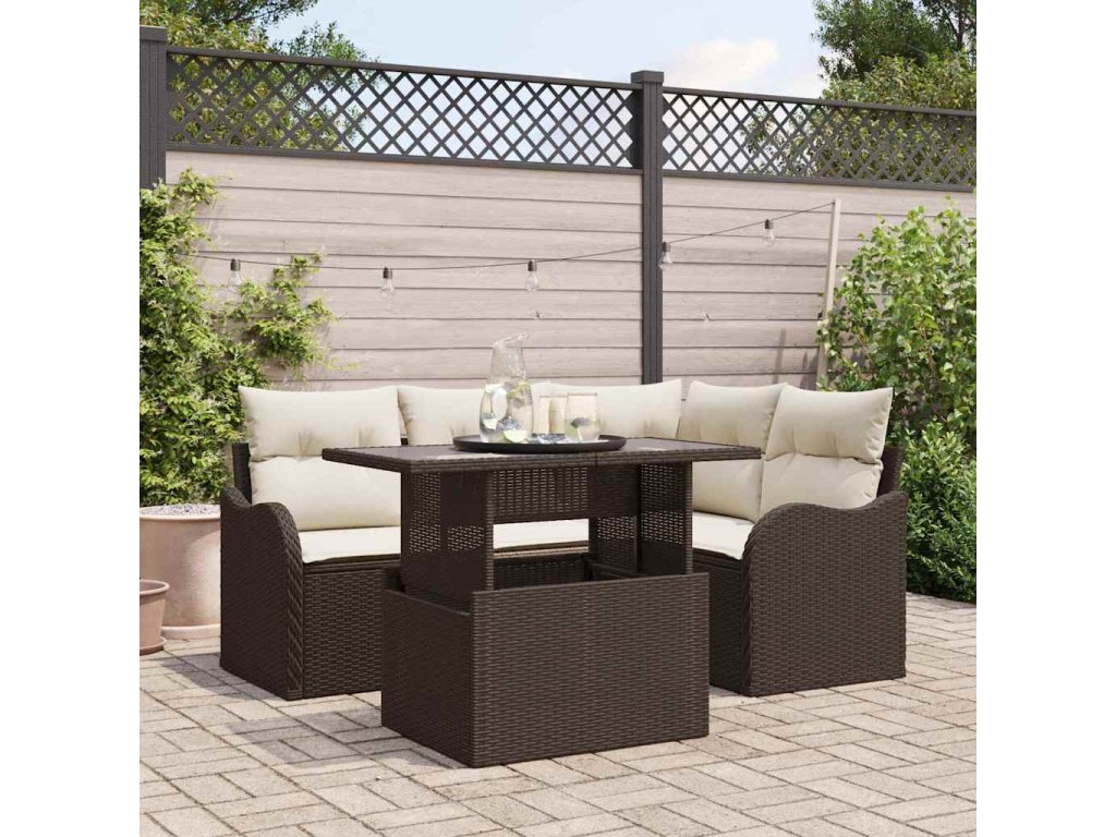 Zahradní jídelní sada s polštářem 5 pcs Hnědá Poly ratan 3348454