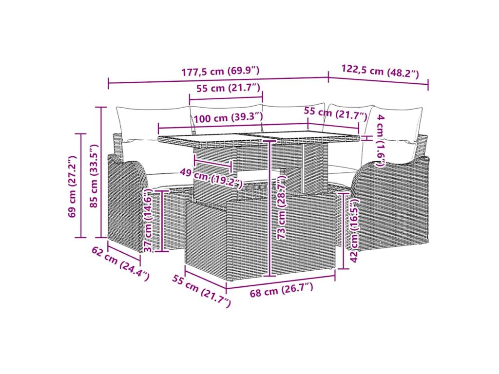 - Odolný rám z poly ratanu: Rám je vyrobený z poly ratanu, který nevadí slunci a špatnému počasí. Tento materiál je sice silný, ale zároveň vypadá skvěle a dodává texturu. Je navržený tak, aby odpovídal modernímu designu a splnil potřeby pro venkovní použití.