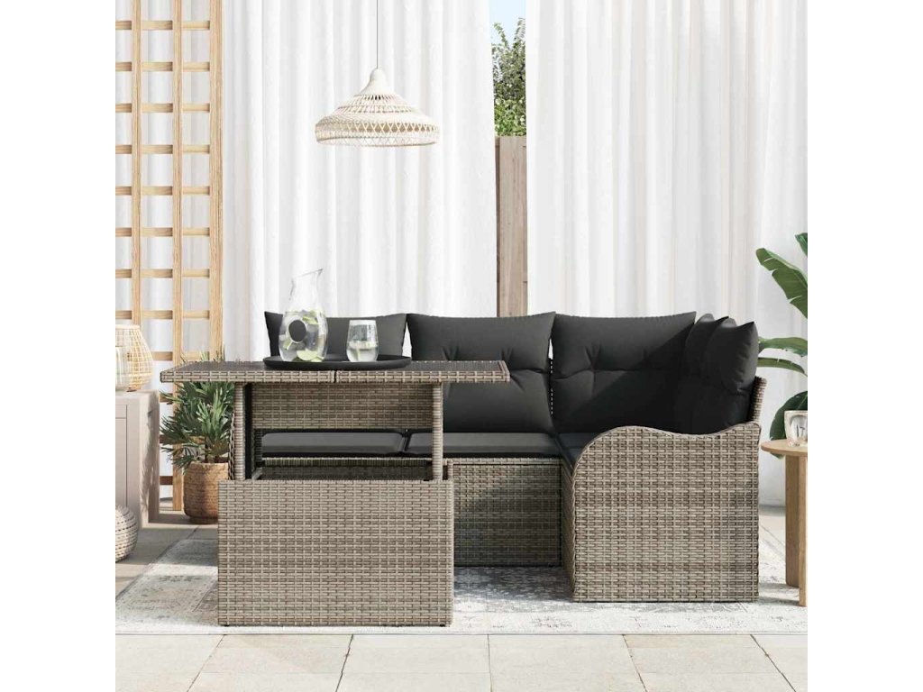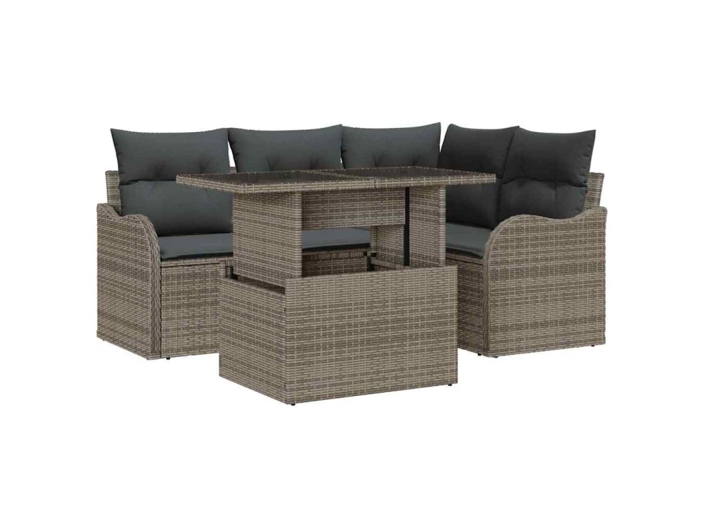 Zahradní jídelní sada s polštářem 5 pcs Šedá Poly ratan 3348455